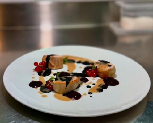 En cuisine, le chef Davide Verdirosa propose des plats à base de poisson frais et de produits locaux, dans le respect des saisons. Deux menus dégustation sont proposés : un menu terre (65