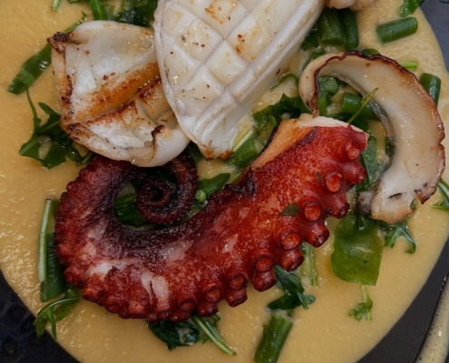 classiques nationaux, sans oublier les cocktails d’auteur préparés avec soin et compétence. L’offre gastronomique est le fruit d’une recherche constante de matières premières fraîches et authentiques, dans le respect des saisons et de la tradition. Le poisson, préparé avec une technique essentielle, exalte sa fraîcheur et sa saveur : à essayer, le jambon au couteau, le trio de tartares de poisson cru ou le poulpe rôti avec des légumes locaux. Chaque plat peut être accompagné d’un verre de vin suggéré par le personnel, qui aime guider les clients à la découverte de nouvelles étiquettes. Chaque jour, des focaccias et la typique Sardenaira sont cuites au four, ainsi que des tartes salées et des légumes farcis qui rappellent les saveurs authentiques de la cuisine ligure maison. Le bistrot dispose également d’un espace extérieur, parfait pour un apéritif élégant accompagné de petites délices culinaires ou pour un déjeuner savoureux avec un menu qui varie chaque jour, proposant des plats authentiques et soignés dans une atmosphère accueillante et détendue.