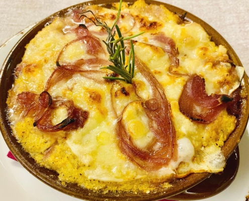 classiques comme soupe à la Valpellinese ou fondue à la valdôtaine avec polenta rustique avant la carbonade avec contour de polenta de bronzage. Très bon ragoût de la viande Fassone piémontais cuit dans le vin rouge et aromatisé avec des herbes et baies de montagne. Le panier de bonbons est très accueillant, il faut noter une tarte aux pommes, douce à être appréciée en cuillère, tout est strictement fait à la maison, une bonne conclusion d’un arrêt au nom de la tradition d’une taverne avec une longue histoire derrière. Riche de propositions, la carte des vins qui comprend les