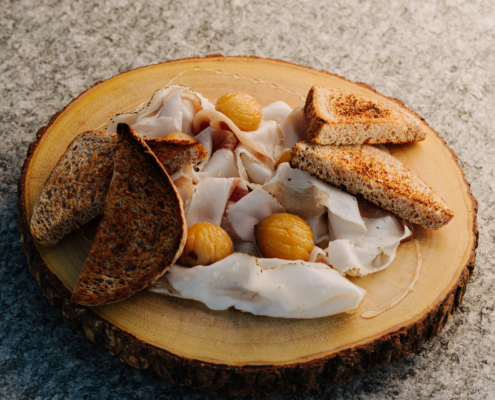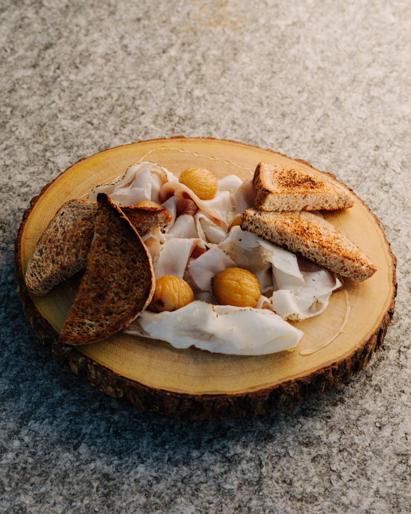 boeuf à la valdôtaine et la crème maison aux tegole et aux châtaignes. À la carte : pâtes maison telles que les tagliolini, les ravioli del plin et les agnolotti, ainsi que des plats typiques tels que les crespelle valdostane et la polenta concia, tous entre 10 et 16 €. Large choix de viandes, dont la carbonada de cerf avec polenta, la tagliata de cerf avec confiture de fruits des bois et la poitrine de