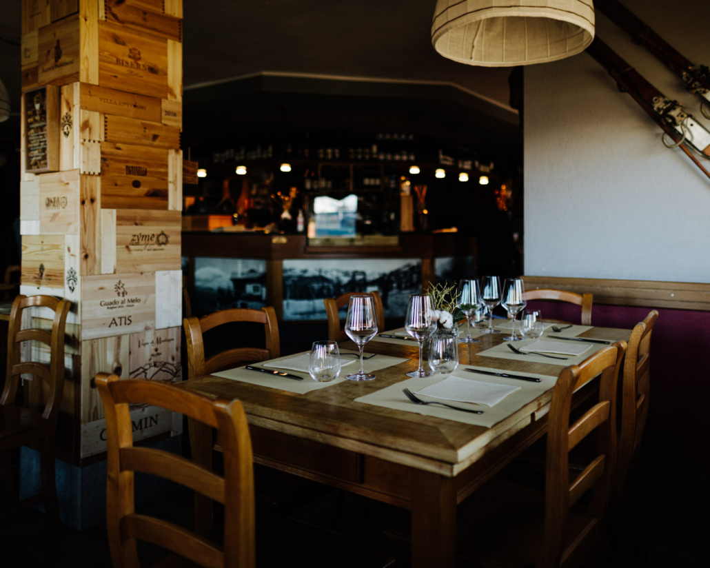 Situé près de l’arrivée du téléphérique de Pila, il est facile d’accès, même avec les skis aux pieds. L’intérieur est très accueillant, un grand poêle crée une atmosphère très suggestive en hiver, tandis qu’en été, vous pouvez déjeuner en plein air avec une vue spectaculaire sur les montagnes qui entourent le village. L’activité a été lancée dans les années 90 par les parents de Katia, qui gère aujourd’hui avec son mari et d’autres associés le restaurant qui comprend également un bar et une piscine chauffée. La cuisine est basée sur les produits locaux et les plats traditionnels, mais aussi sur des préparations créatives. Menu dégustation à 45 euros, avec accord mets-vins à 65 euros, avec un parcours de 5 plats dédiés à la Vallée d’Aoste, tels que la soupe Valpellinentze, l’escalope de