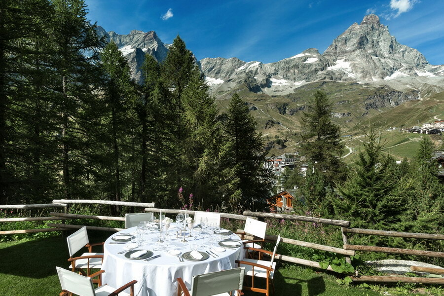 Da non perdere: Il dehors estivo con vista diretta sul massiccio del Gran Paradiso.