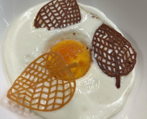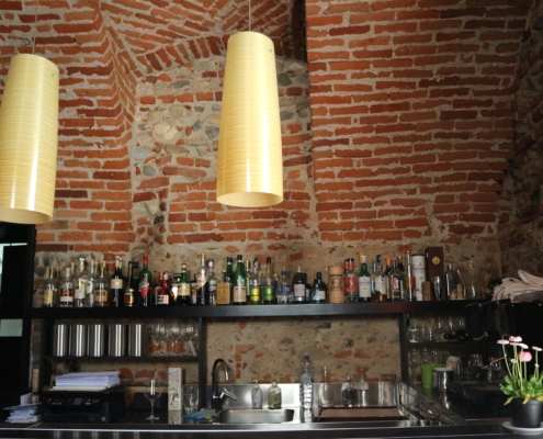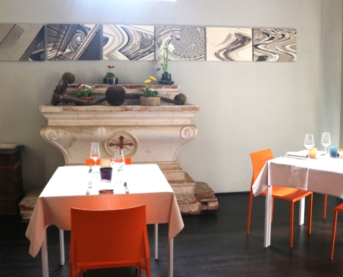 A Mazzè, a pochi passi dal castello, oggi non visitabile, il ristorante di Marinella Toscani e della figlia Ilaria Lauricella trova spazio in una ex chiesa sconsacrata dedicata a Santa Marta. Una ristrutturazione accurata ha mantenuto le volte in mattoni e l’altare, integrando elementi moderni e di design. Tre sale distribuite su due piani offrono ambienti eleganti e intimi, con dettagli floreali e tavoli apparecchiati con cura. La cucina di Marinella rivisita la tradizione canavesana con prodotti stagionali e del territorio. Il menu degustazione (39 euro) propone vitello tonnato senza
